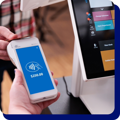 2. Payments are processed securely through your POS system with credit card processing.